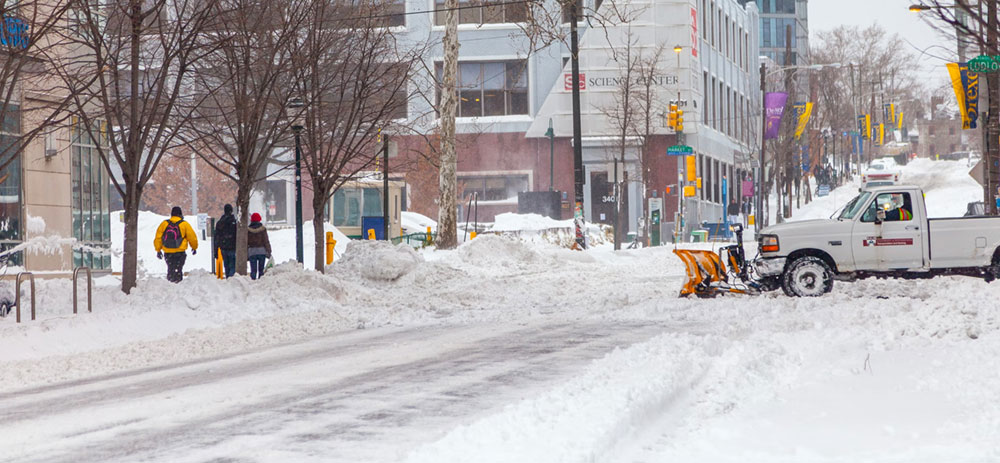 - Walk in designated walkways. Avoid “off-sidewalk short-cuts” which do not receive maintenance.